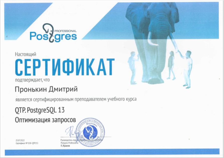 Сертифицированный преподаватель PostgreSQL: QPT. PostgreSQL 16. Оптимизация запросов