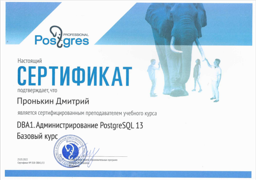 Сертифицированный преподаватель PostgreSQL: DBA1. Администрирование PostgreSQL 16. Базовый курс