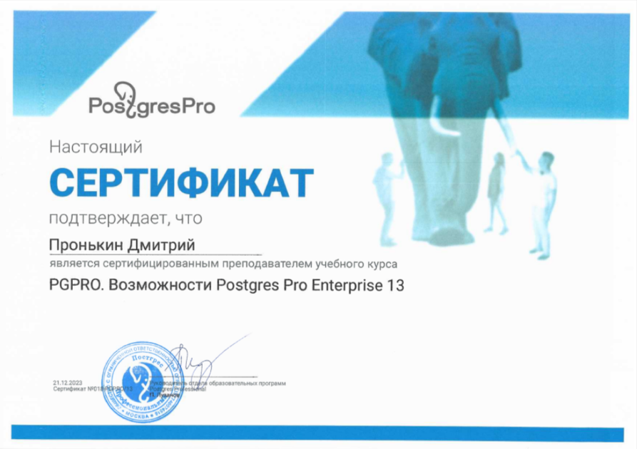 Сертифицированный преподаватель PostgreSQL: PGRPRO. Возможности Postgre Pro Enterprise 13