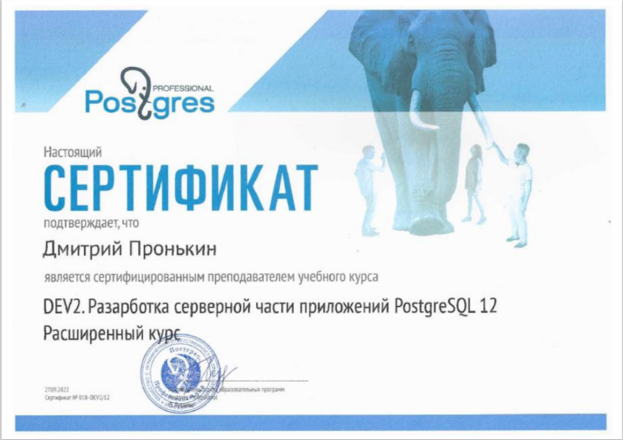 Сертифицированный преподаватель PostgreSQL: DEV2 Разработка серверной