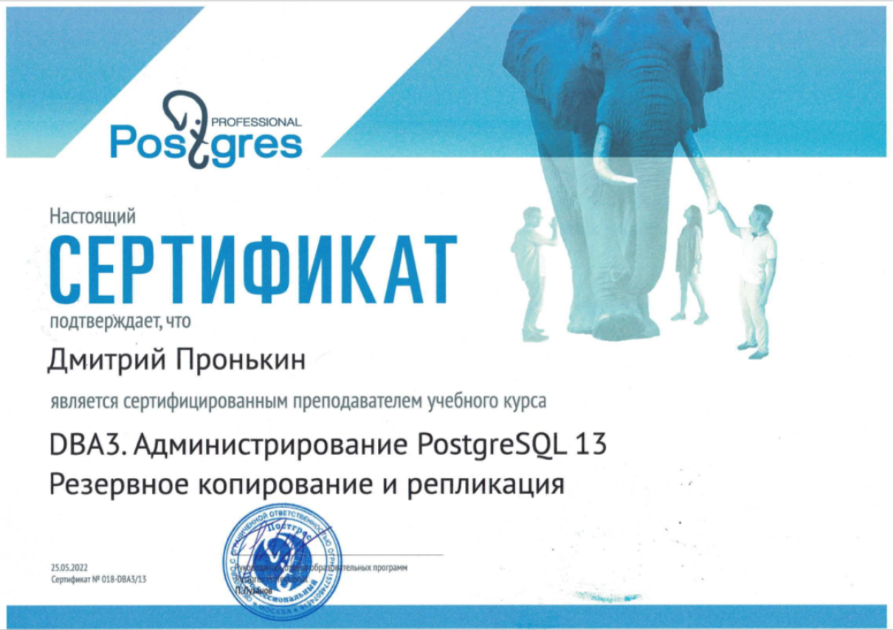 Сертифицированный преподаватель PostgreSQL: DBA3. Администрирование PostgreSQL13. Резервное копирование и репликация