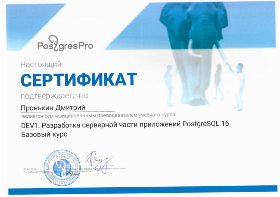 Сертифицированный преподаватель PostgreSQL: DEV1. Разработка серверной части приложений PostgreSQL 16. Базовый курс